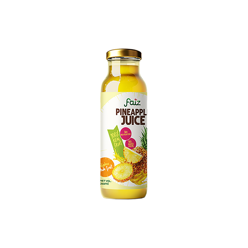Every 260 ml bottle of Faiz Pineapple Juice is 100% natural & 100% pineapple
